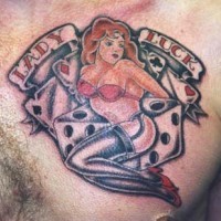 Pinup ragazza oldschool con cannocchiale tatuaggio