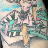 Cameriera pinup con pattini a roteltae tatuaggio