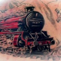 Tatuaggio color rosso antico del vecchio treno a vapore